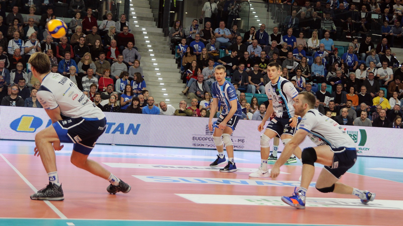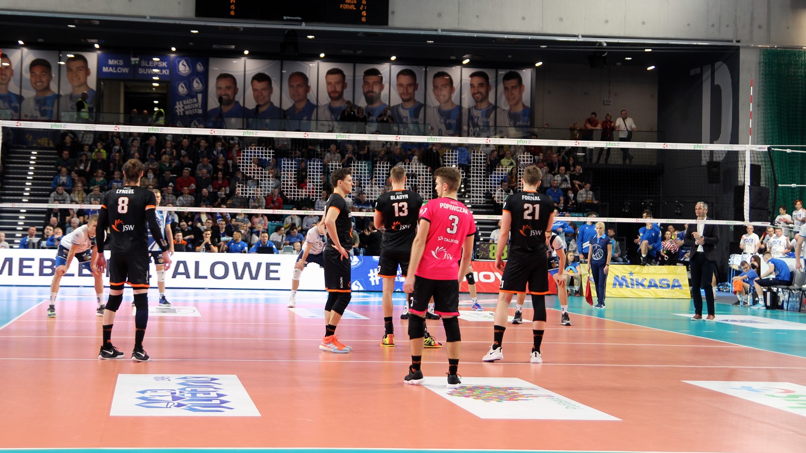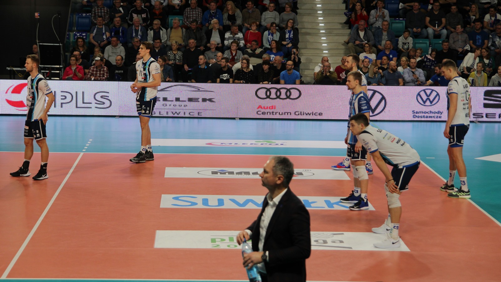 Hala Suwałki Arena wypełniona po brzegi - ponad dwa tysiące kibiców. Na mecz przyjechała także grupa 30-40 sympatyków gości. Ślepsk Malow rozpoczyna w składzie: Kevin Klinkenberg, Nicolas Szerszeń, Bartłomiej Bołądź, Andreas Takvam, Cezary Sapiński, Joshua Tuaniga oraz na libero Paweł Filipowicz/Adrian Stańczak.